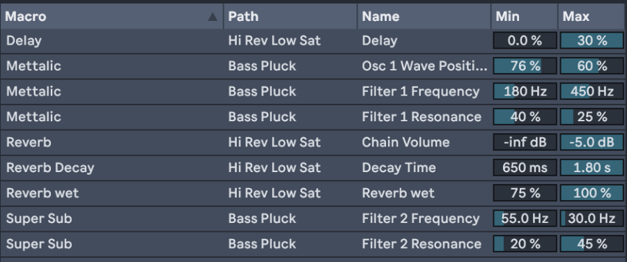 So you can just play with the settings and macros here to achieve different sound. I have put the most emphasis on the Delays and Reverbs because it is that one effect that can ruin the bass if overused. So Try whatever works the best but sometimes it is the best to get rid of the Delays and Reverbs altogether. It all depends on your mix and other instruments.